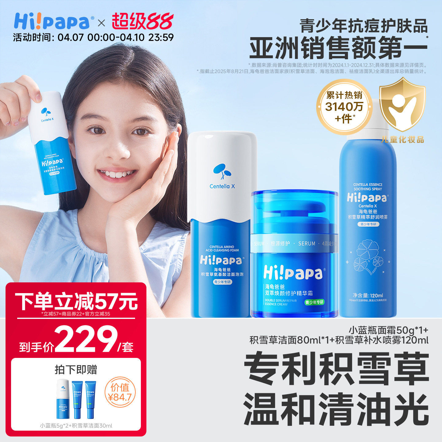 海龟爸爸儿童洗面奶女孩儿童面霜补水小孩子专用面膜青春期套装