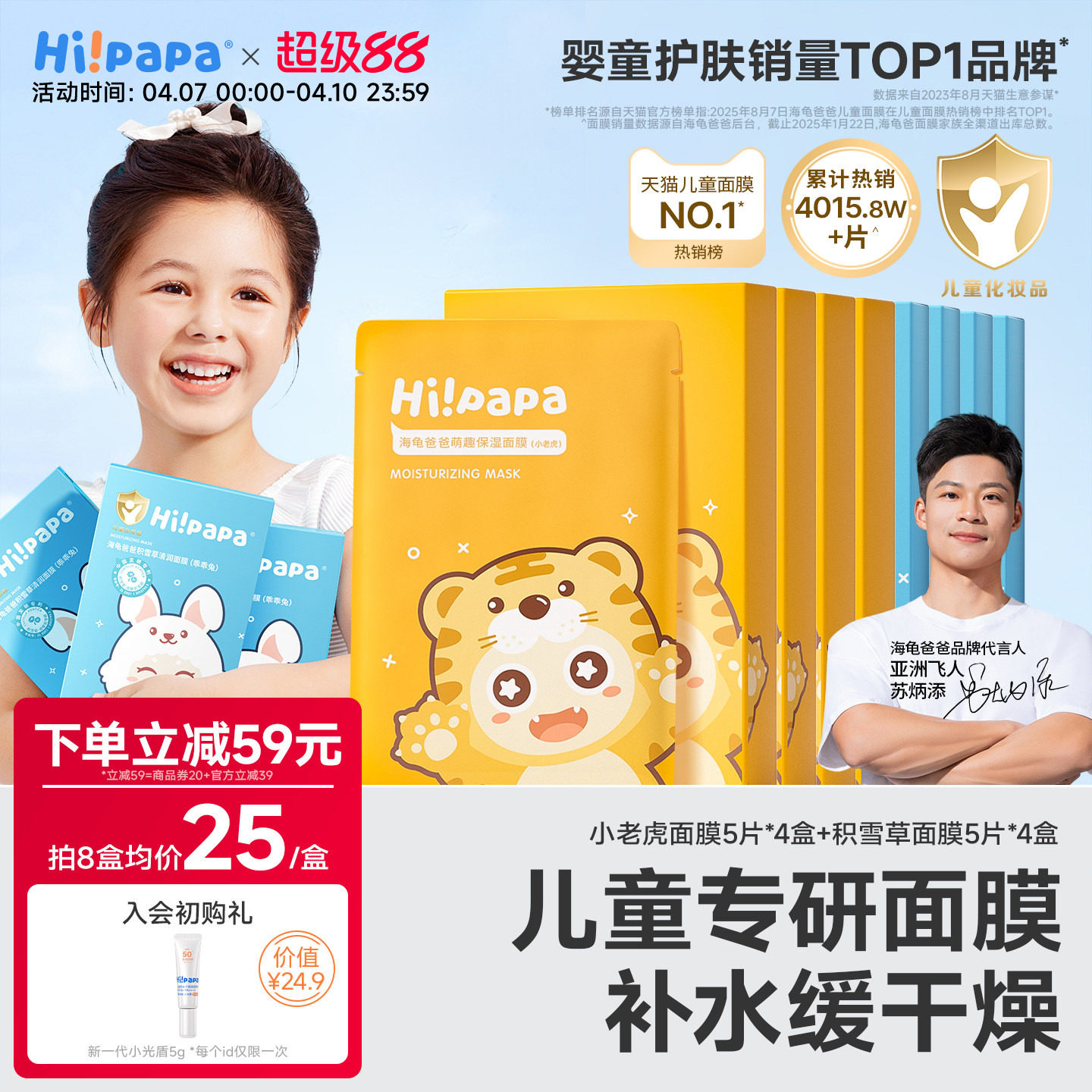 海龟爸爸儿童面膜女孩宝宝专用春夏小朋友滋润保湿小孩子补水面膜