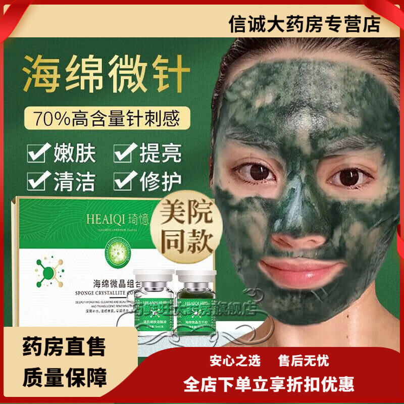 小绿膜海绵微针琦憶海绵微针套盒美容院小绿膜海藻矽针微晶1盒10瓶+面膜10片 2盒 20瓶+面膜10片