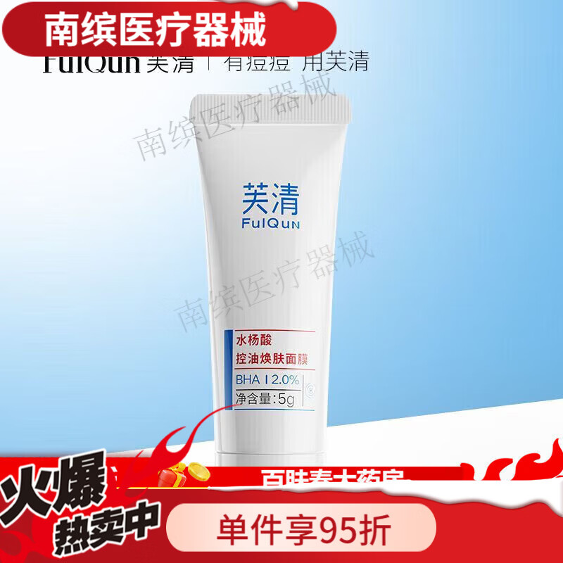 芙清水杨酸面膜 芙清水杨酸控油祛痘去I闭口去黑头粉刺非果酸深层 芙清2%水杨酸涂抹面膜5g1支
