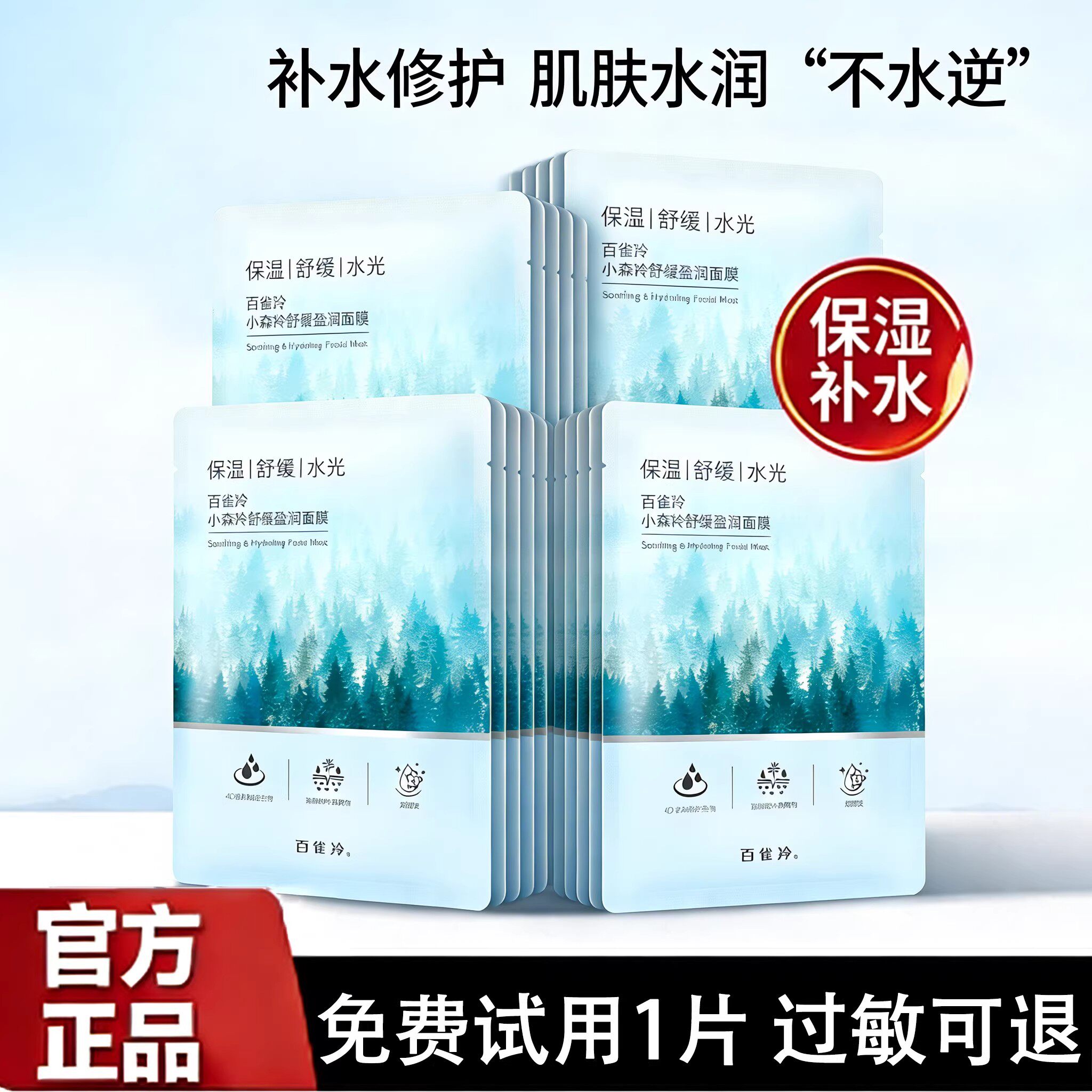 拼多多百雀羚小森羚舒缓盈润面膜保湿补水修护敏感泛红