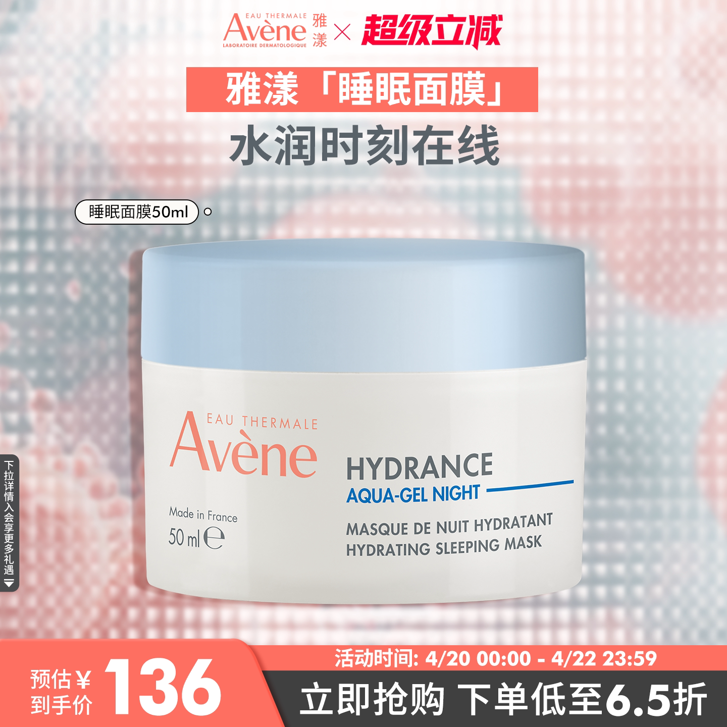 【立即抢购】雅漾恒润保湿睡眠面膜补水敏感肌免洗涂抹面膜官网