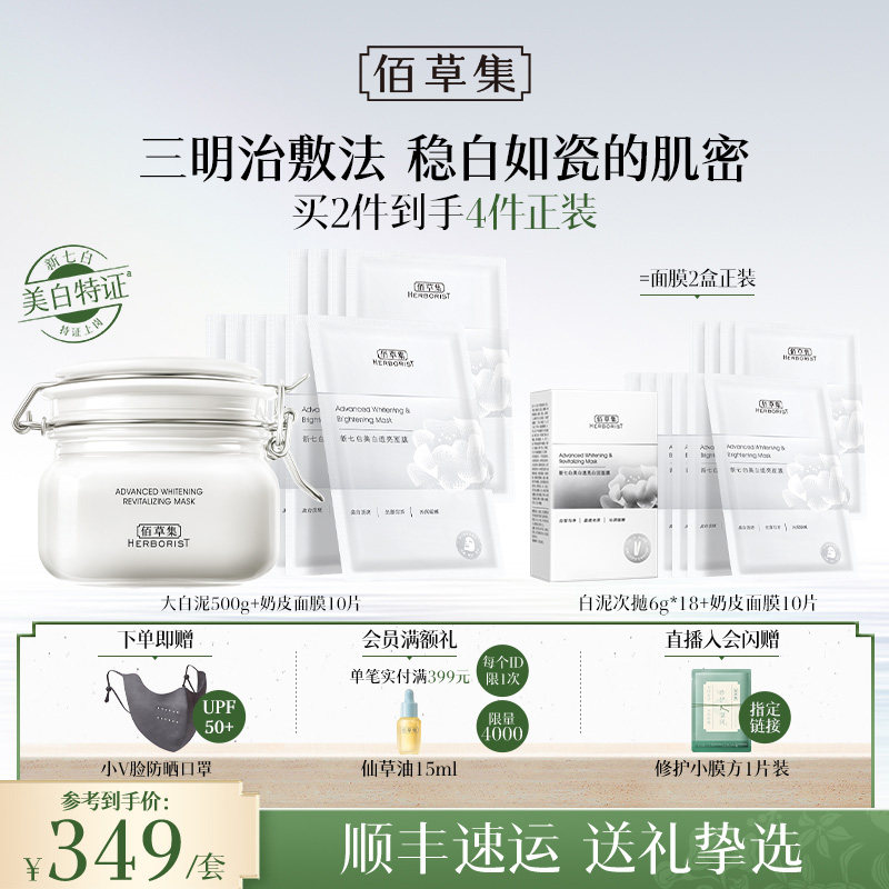 佰草集新七白三明治敷法美白祛斑大白泥特证精华奶皮面膜官方正品