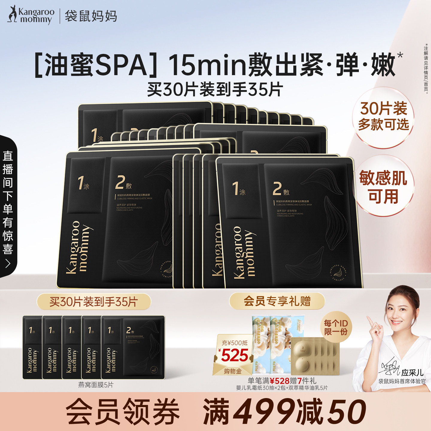 袋鼠妈妈燕窝面膜补水油养保湿滋润专用面膜敏感肌女护肤品30片