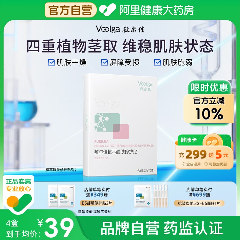 敷尔佳植萃醒肤修护面膜5片补水嫩光滑保湿肌肤滋润脸面部女正品