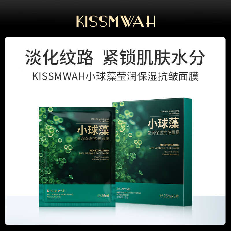 KISSMWAH小球藻莹润保湿抗皱面膜淡化细纹祛皱紧致提拉祛黄提亮熬夜抗初老 5盒 买3赠2盒 - 5000+人已抢购 【新品立减促销剩余1小时】