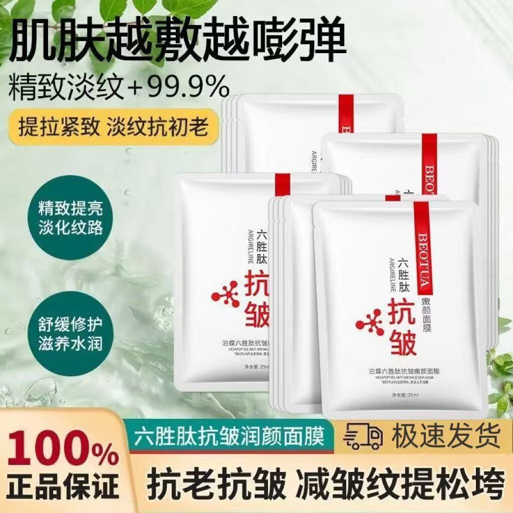 泊蝶【旗舰正品】六胜肽面膜抗皱补水润泽改善肌肤干燥紧绷细嫩肌肤女 5盒 买3赠2盒 - 5000+人已抢购 【新品立减促销剩余1小时】