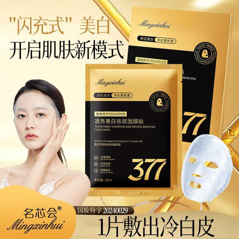 名芯会(Mingxinhui)【朋友买过】377透亮美白祛斑面膜贴淡斑黑色素祛黄提亮改善暗沉 5盒 买3赠2盒 - 5000+人已抢购 【新品立减促销剩余1小时】