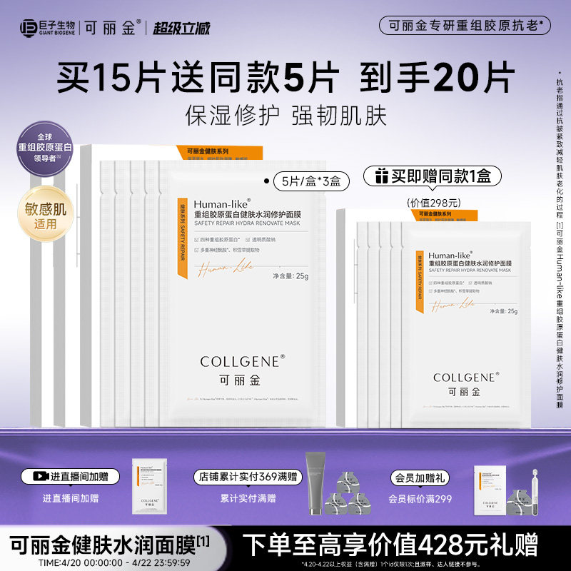 【巨子生物】可丽金重组胶原蛋白健肤水润敏感肌修护保湿面膜