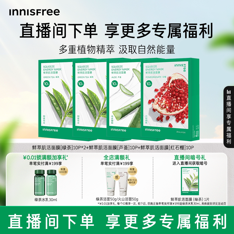 【自播专属】悦诗风吟绿茶鲜萃肌活舒缓贴片面膜芦荟石榴精粹