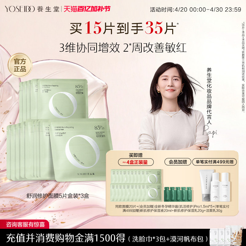 养生堂白桦舒润修护精华面膜敏感肌可用温和保湿舒敏呵护改善红敏