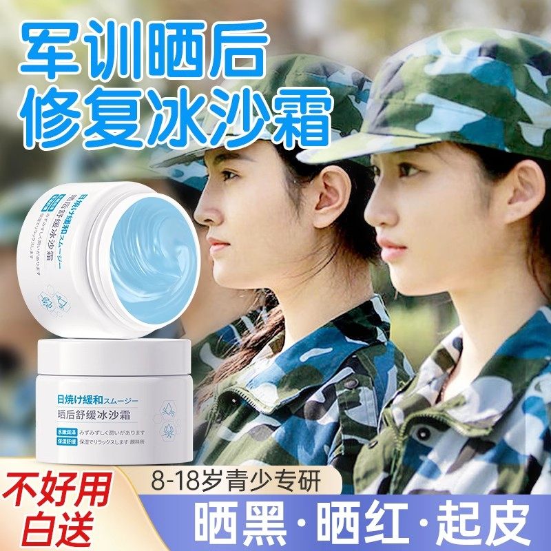 军训晒后修复专用面霜儿童皮肤晒伤膏晒黑快速变白面膜芦荟胶凝露