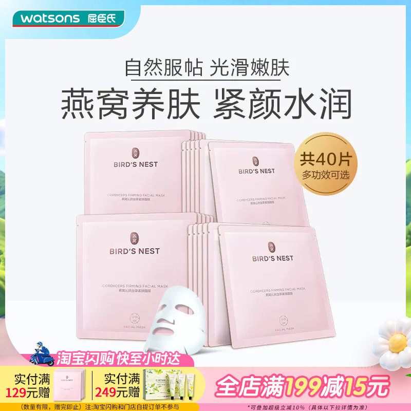 屈臣氏燕窝沁润虫草紧颜面膜补水紧致提亮40片