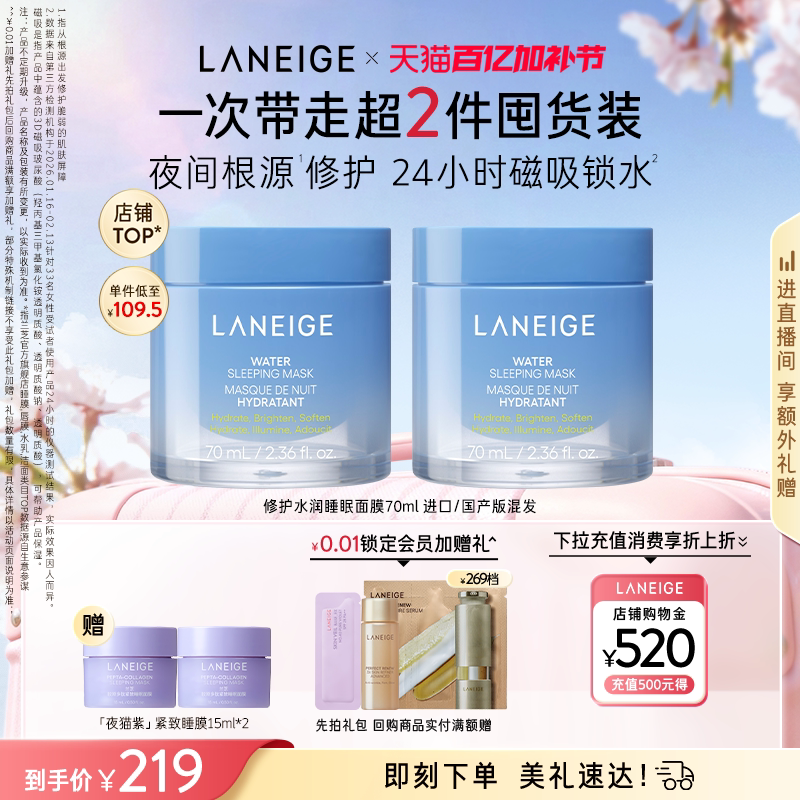 兰芝修护水润睡眠面膜70ml保湿紧致舒缓焕亮细腻涂抹免洗官方正品