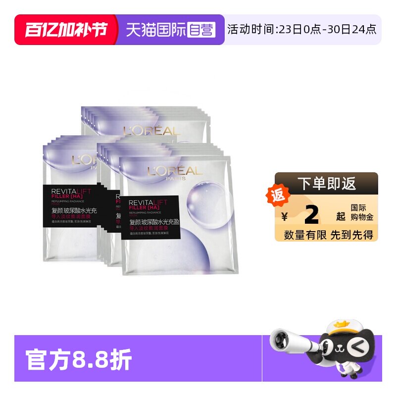 【自营】欧莱雅复颜玻尿酸淡纹膨润精华面膜补水保湿舒缓15片