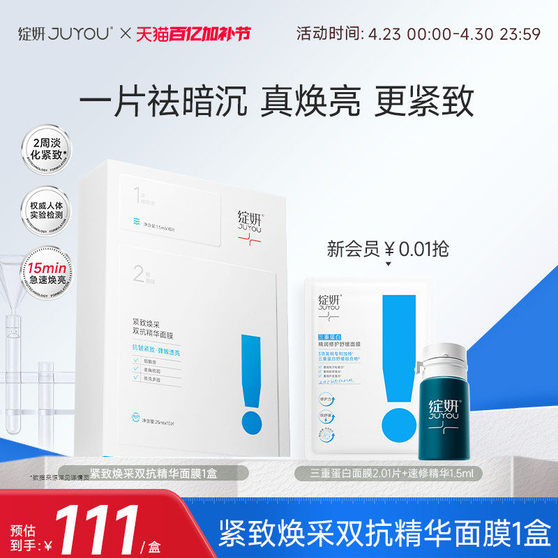 【专享】10片绽妍双抗面膜紧致去黄提亮抗氧抗皱熬夜修护舒缓TK