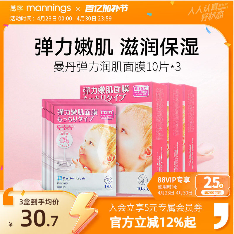 万宁mandom 曼丹保湿润肌面膜10片毛孔紧致保湿提拉紧致官方正品