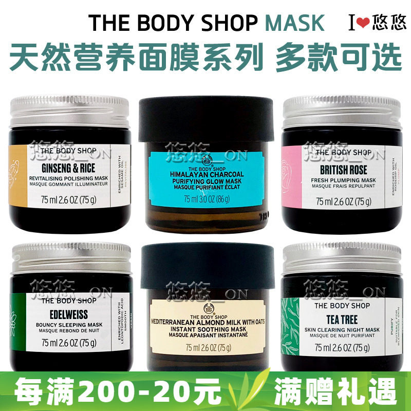 TheBodyShop玫瑰补水 大米清洁 保湿滋养竹炭净肤大麦茶洁净面膜