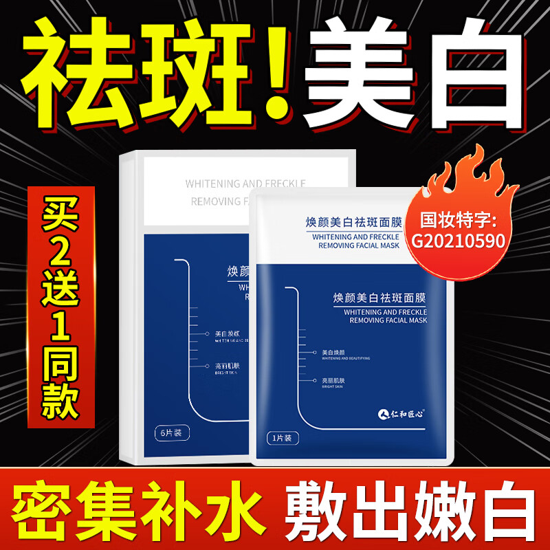 仁和匠心美白祛斑面膜可搭提亮肤色补水保湿淡化斑玻尿酸精华面膜用男女士 1盒【拍2盒到手3盒】