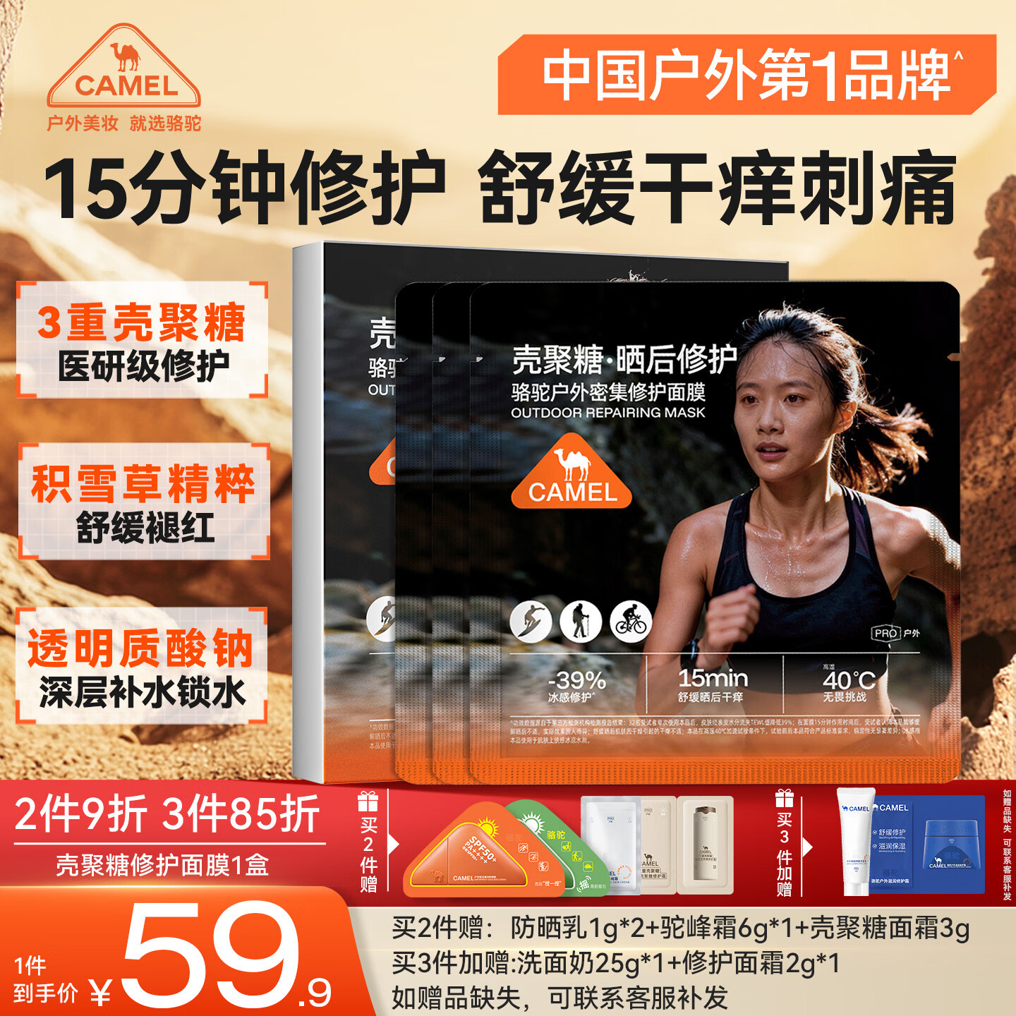 骆驼(CAMEL)户外密集修护面膜1盒(28ml*3)