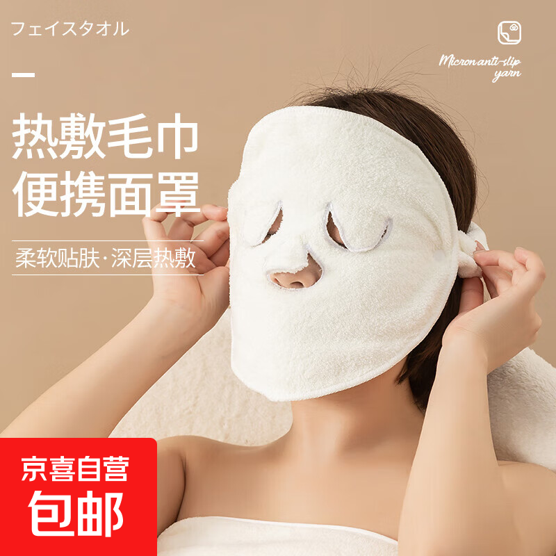 面部敷脸巾热敷毛巾面罩珊瑚绒蒸脸巾美容冷敷脸部皮肤管理灌肤巾 热敷毛巾面膜罩-3孔挂耳款-1个