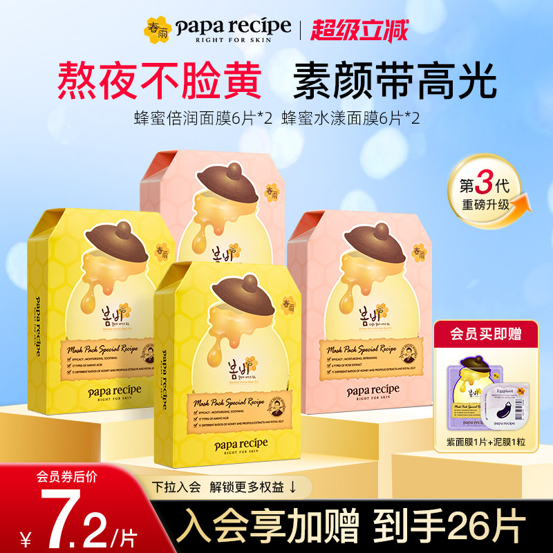 【熬夜救急组】韩国春雨蜂蜜面膜补水保湿玫瑰去黄气暗沉提亮肤色