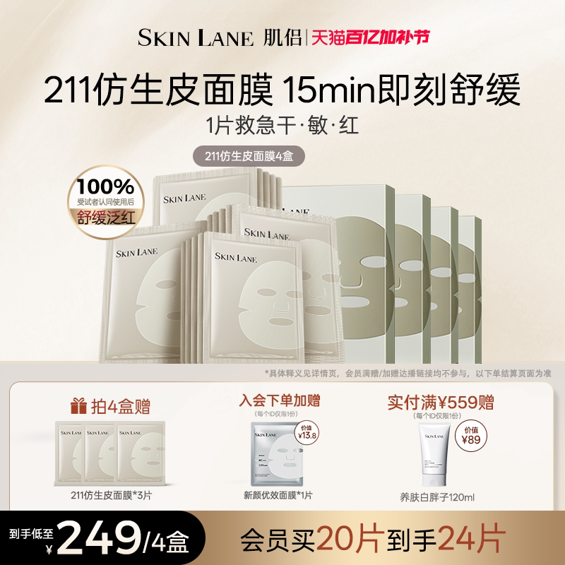 肌侣211仿生皮面膜补水保湿温和修护舒缓敏感肌适用