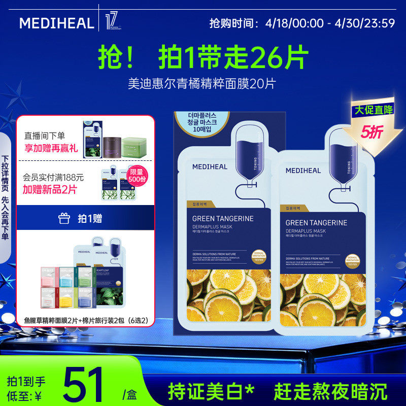 【美白焕亮】美迪惠尔官方旗舰店青橘精粹20片美白保湿面膜男女