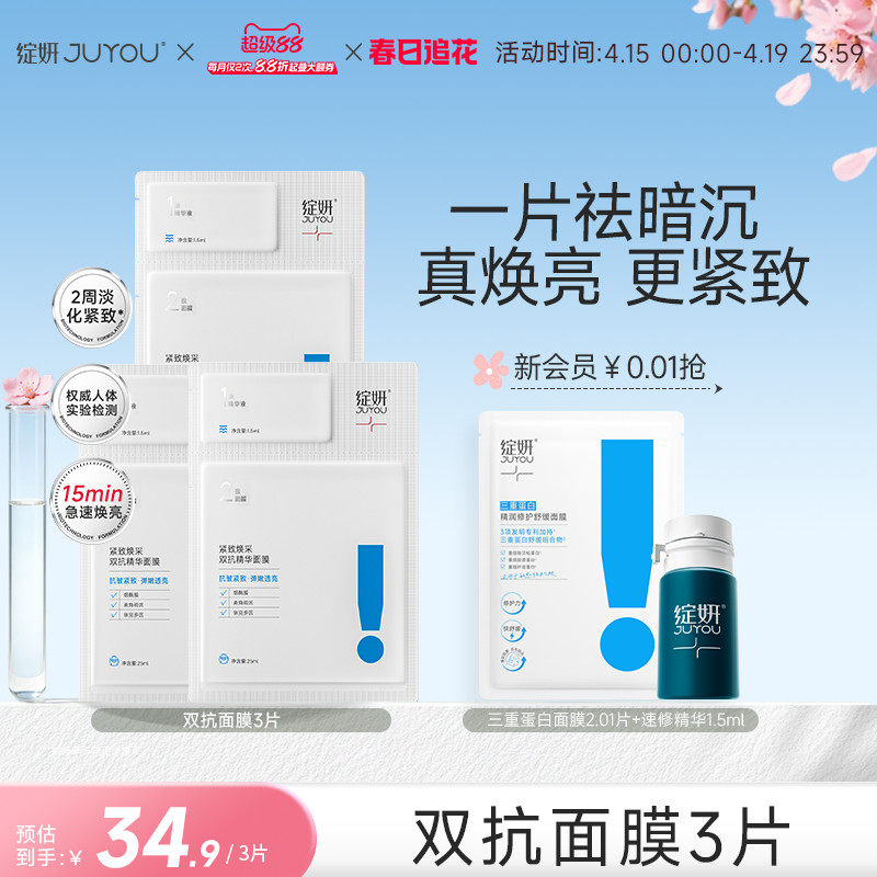 【专享】绽妍焕采双抗精华面膜去黄提亮抗氧抗皱熬夜舒缓护肤品TK