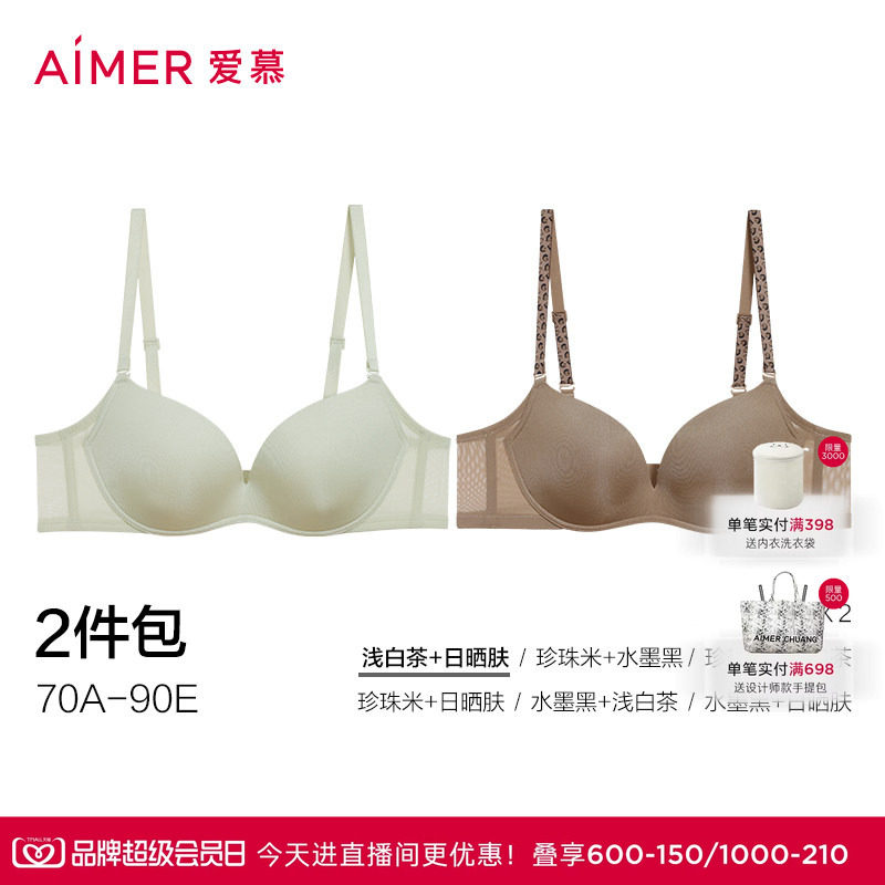 【面膜文胸2件包】爱慕内衣女大胸显小薄/小胸聚拢软支撑净痕文胸