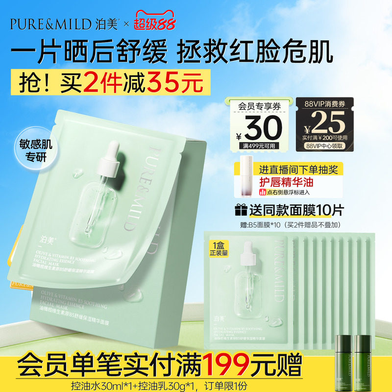 泊美油橄榄B5面膜补水保湿舒缓褪红敏感肌玻尿酸舒缓面膜官方正品