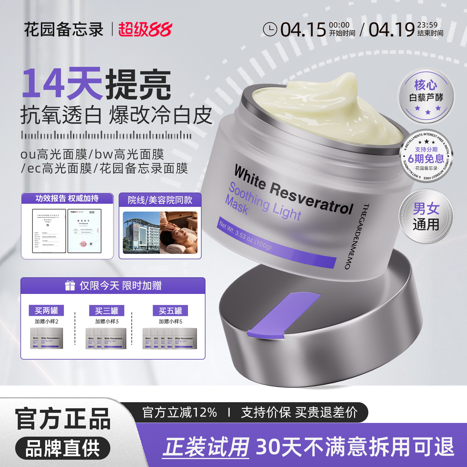 【美容院同款】bw高光面膜ou高光面膜ec高光面膜抗氧花园备忘录