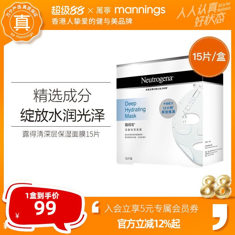 【官方正品】露得清深层保湿贴片面膜15片长效滋润补水水嫩