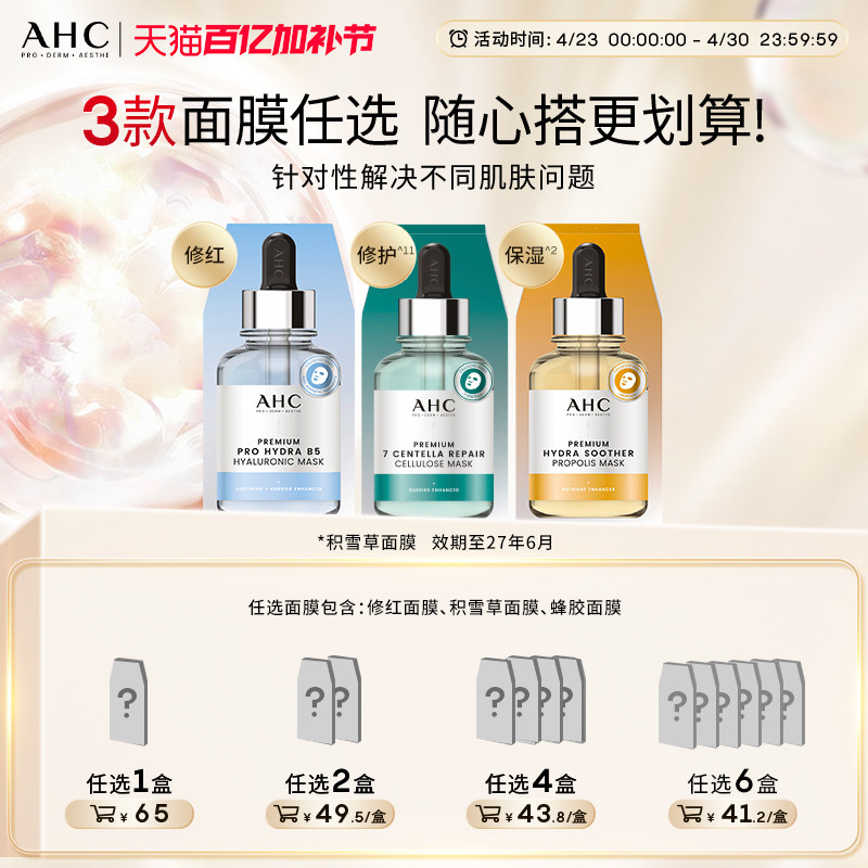【加入购物车下单】AHC官方旗舰店修红面膜积雪草面膜蜂胶面膜