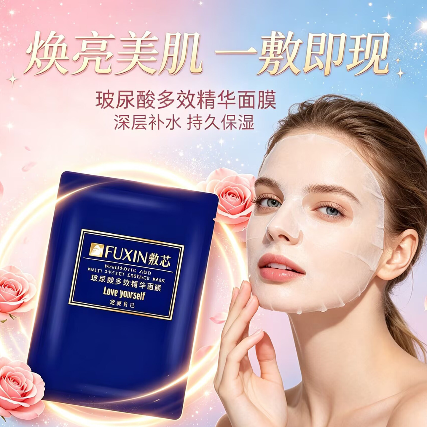 敷芯玻尿酸多效精华面膜补水保湿舒缓紧致提亮肤色过敏修复护肤品