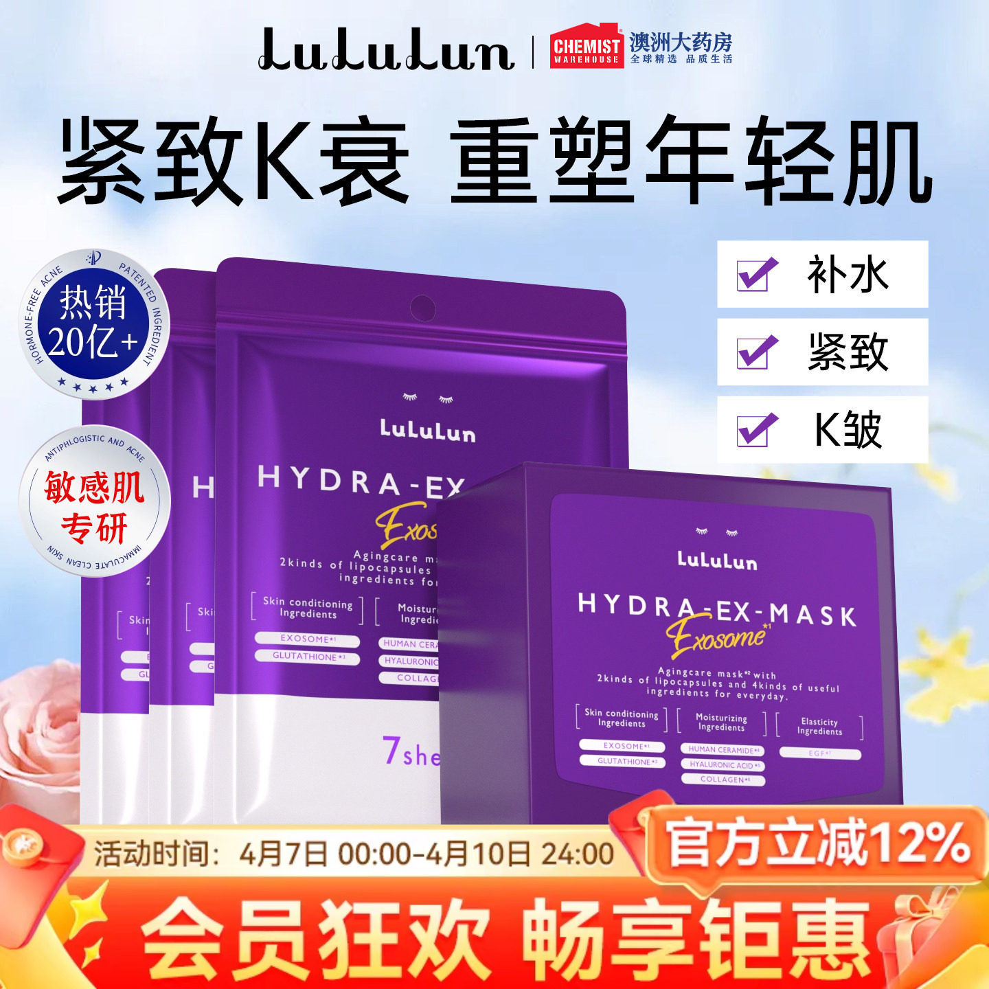 lululun日本双抗老抗氧化衰淡皱纹紧致补水美弹润白胶原蛋白面膜