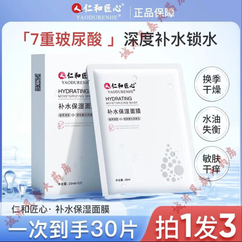 仁和匠心【直售】仁和匠心 拍1发3 补水保湿面膜多重玻尿酸保湿油痘肌 一盒 10片 面膜到手3盒=30片