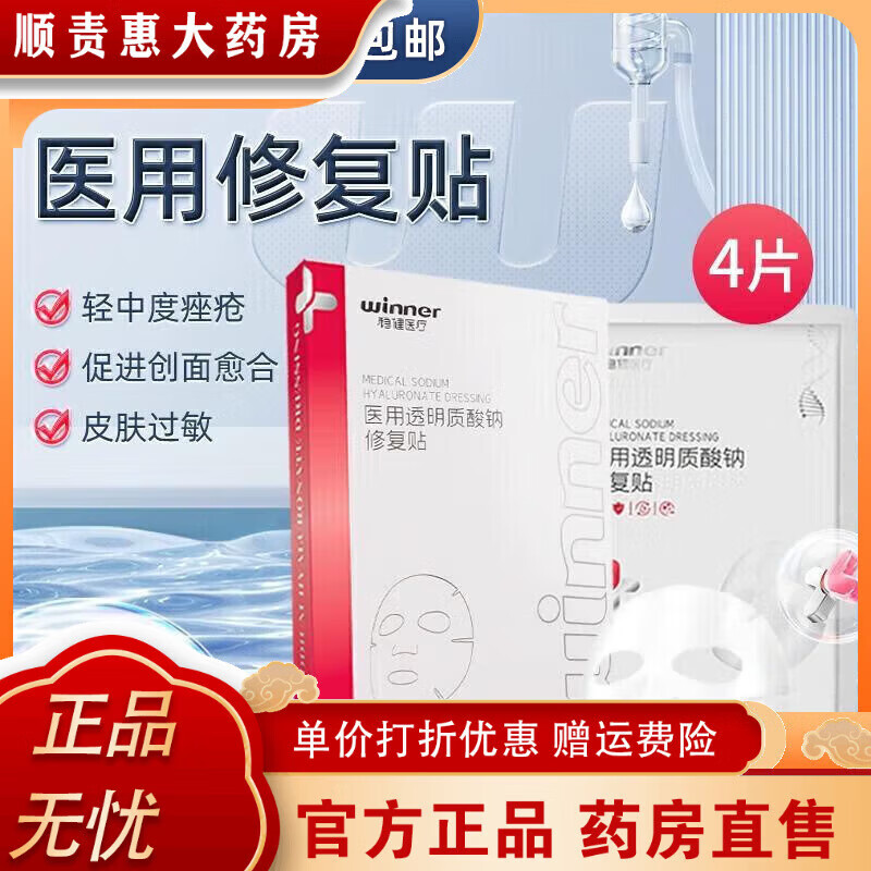 稳健(Winner)面膜医用透明质酸钠修复贴面膜轻中度痤疮激光术后晒后舒 【水光术后修复贴】 1合-共4片