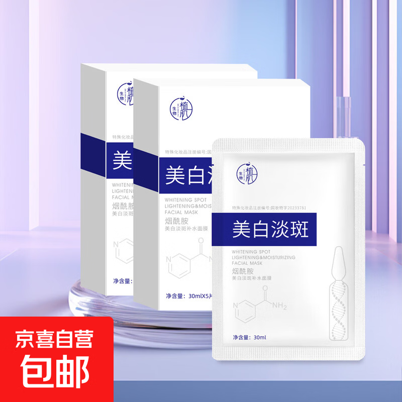 御植堂烟酰胺美白淡斑补水面膜-提亮贴片面膜滋润保湿祛斑面膜 DZ1658美白淡斑面膜30ml*5片【蓝白款】4盒