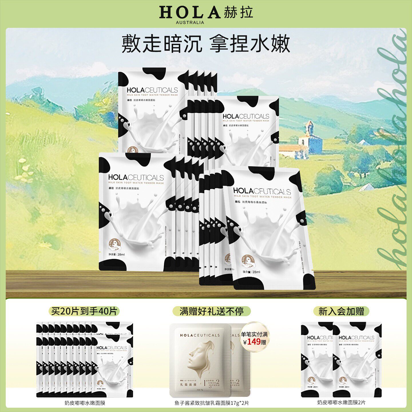 Hola赫拉奶皮面膜牛奶补水保湿烟酰胺提亮熬夜去黄暗沉平价面膜