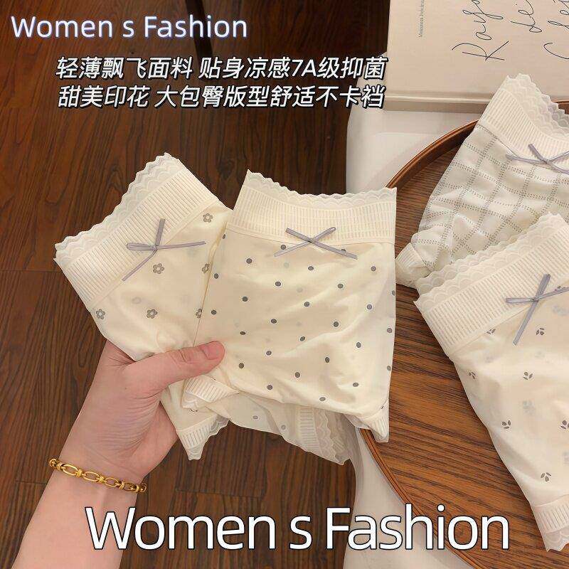 超薄10D冰丝面膜内裤女士甜美蕾丝花边蝴蝶结少女无痕凉感三角裤