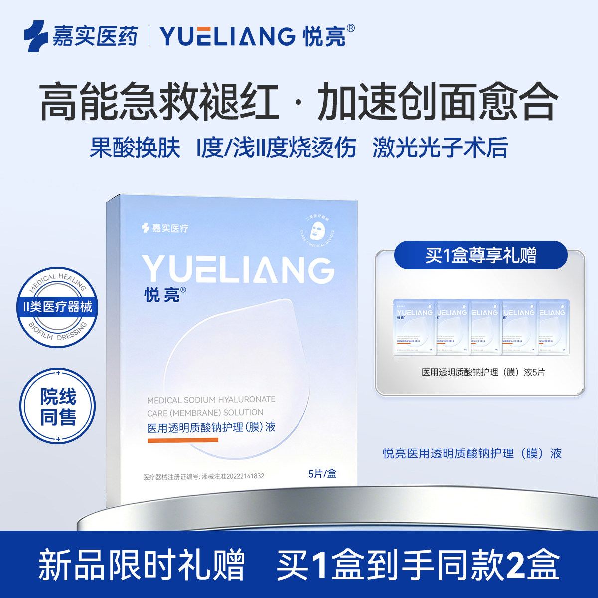 悦亮医用透明质酸钠修复贴术后辅料光子冷敷贴械字号非面膜官方