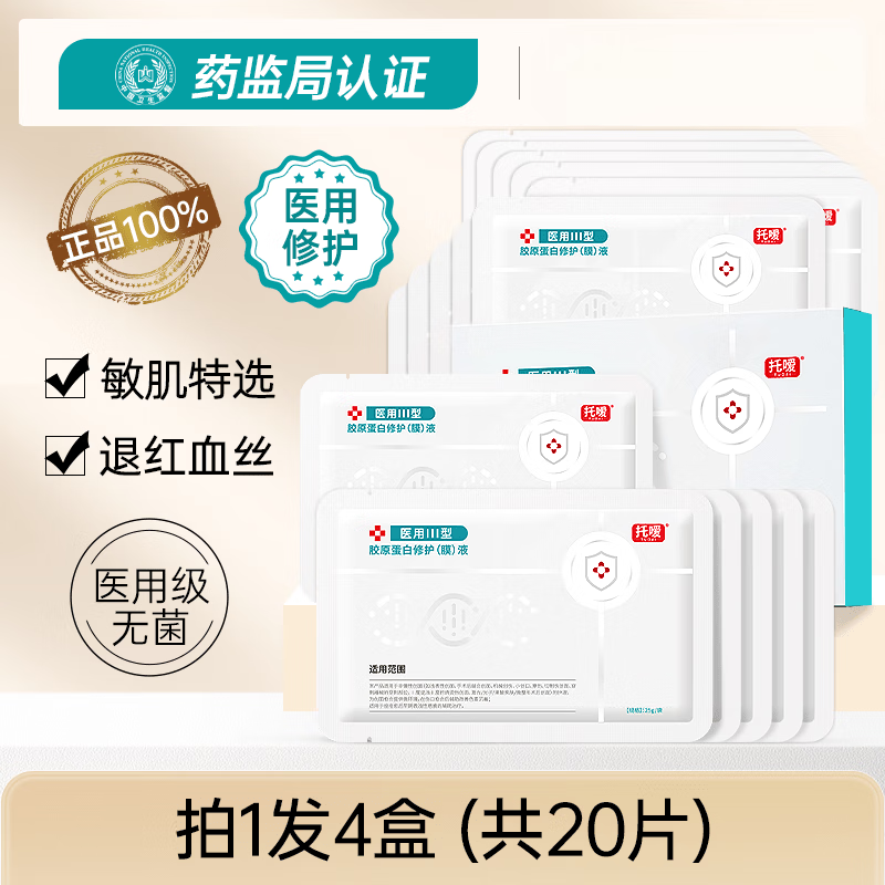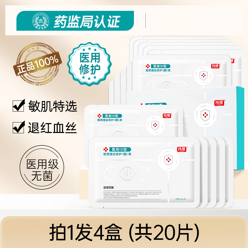 医用Ⅲ型胶原蛋白冷敷贴面膜型械字号非修复女医美专营店官方 拍1发4 发4盒共20片 【干敏泛红 舒缓褪红】