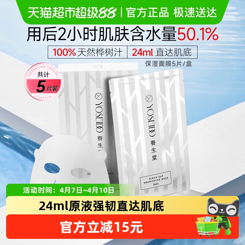 养生堂白桦树汁补水保湿面膜女面部护肤滋润呵护白膜5片改善皮肤