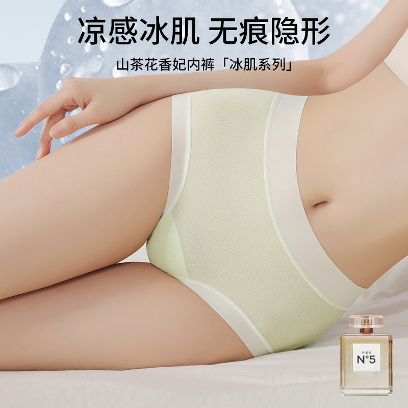 山茶花凉感冰丝内裤女中腰10A抗菌加长裆女士包臀透气面膜三角裤