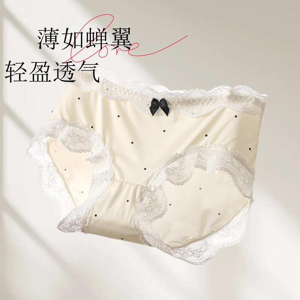 新款轻奢裸感冰丝面膜波点内裤女法式复古蕾丝边女士中腰包臀三角