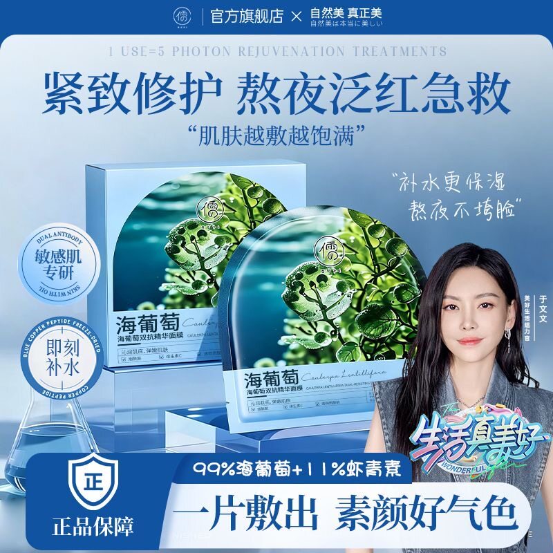 儒意98%海葡萄双抗面膜烟酰胺紧致皱抗白美补水保湿嫩肤熬夜