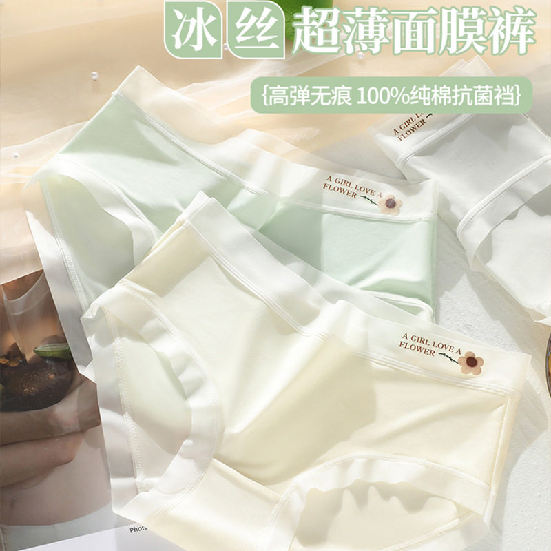 冰丝内裤女士夏季超薄无痕纯棉抗菌裆少女透气面膜裤中腰三角裤头
