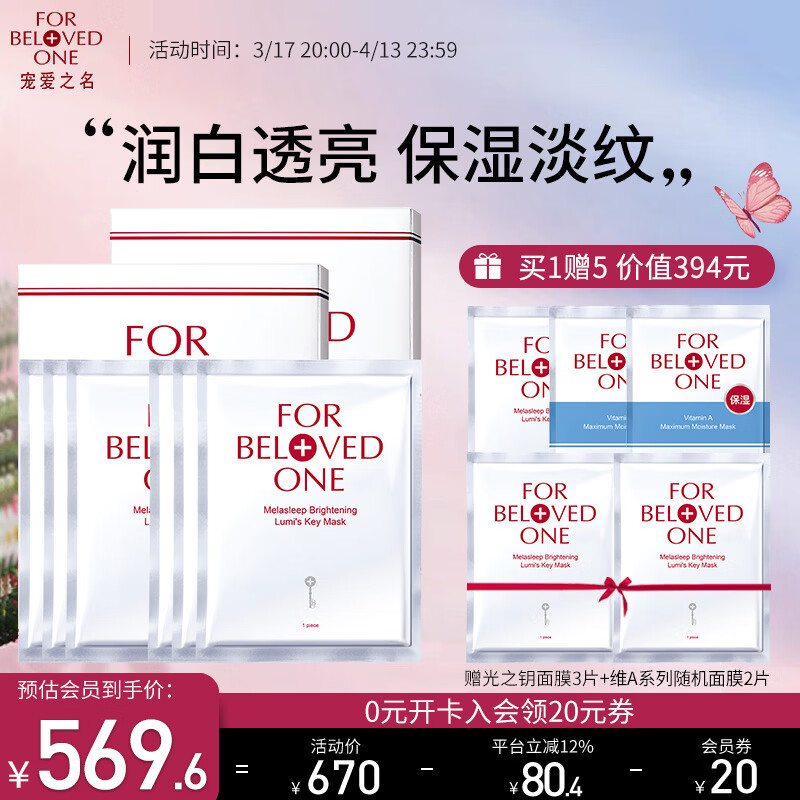 宠爱之名面膜生物纤维面膜组合保湿补水提亮肤色 光之钥美白面膜3片*2盒