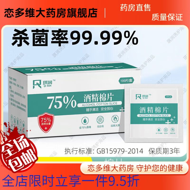 75酒精棉片独立包装手机消毒湿巾医用餐具清洁一次性耳洞 共400片【买2盒发4盒中文版6*3cm】 安全放心【消字号认证产品#琪润品牌】